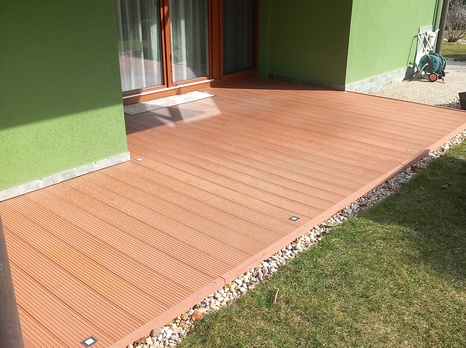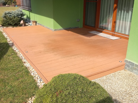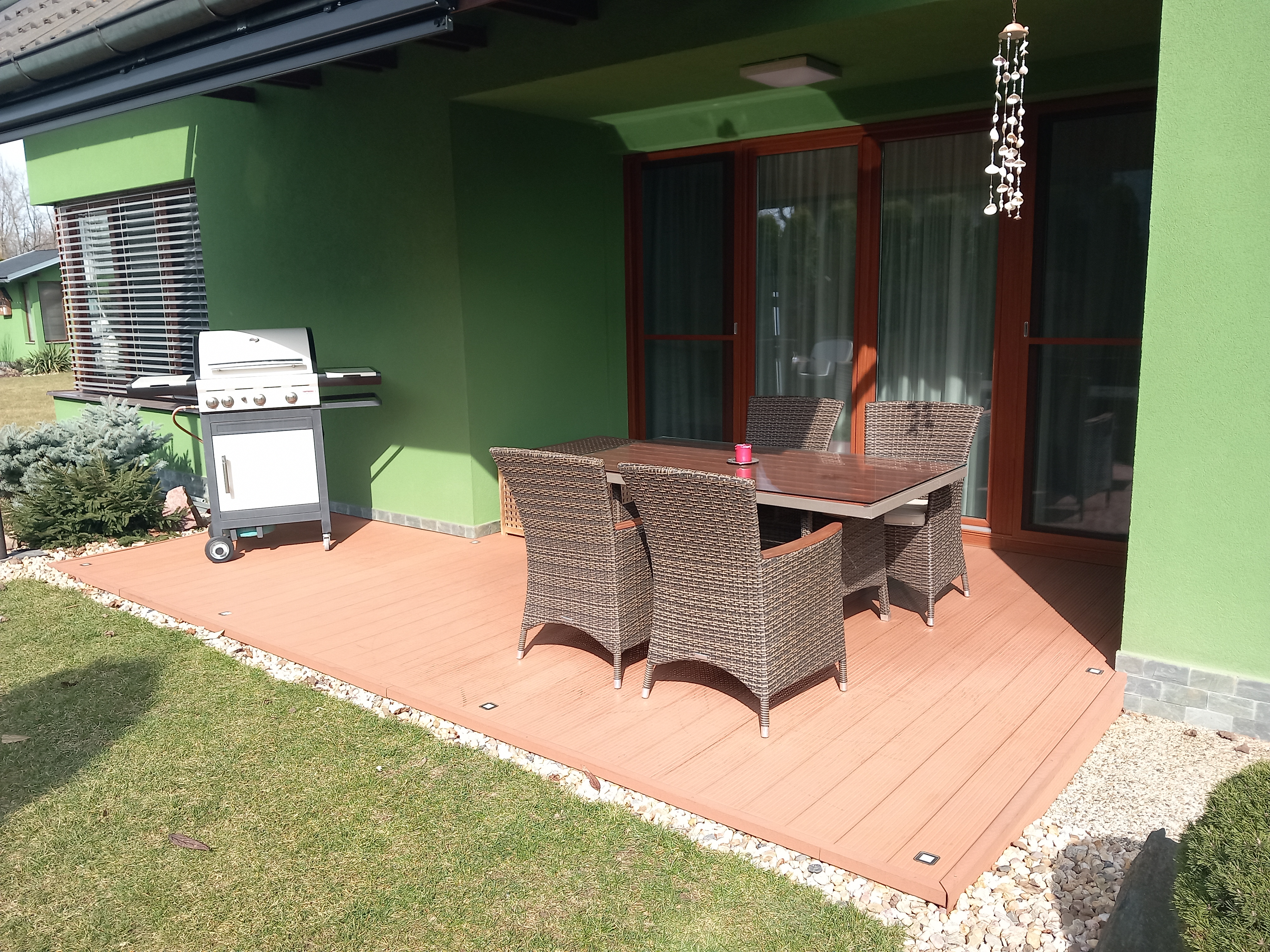 WPC terasa si po desetiletí používání udržela svou pevnost a stabilitu. Materiál odolal dešti, sněhu i silnému slunci bez deformací nebo prasklin. Na rozdíl od dřeva nevznikly třísky ani jiné poškození, což je velké plus zejména pro rodiny s dětmi.