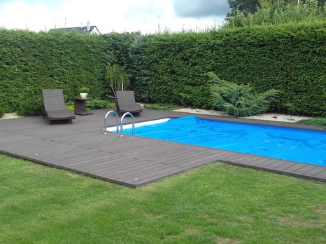 Po deseti letech je terasa stále příjemná na dotek a neklouže ani za mokra. To je důležité zejména kolem bazénů nebo v oblastech s častými srážkami. Díky absenci třísek a prasklin se nemusíme obávat poranění při chůzi naboso.
