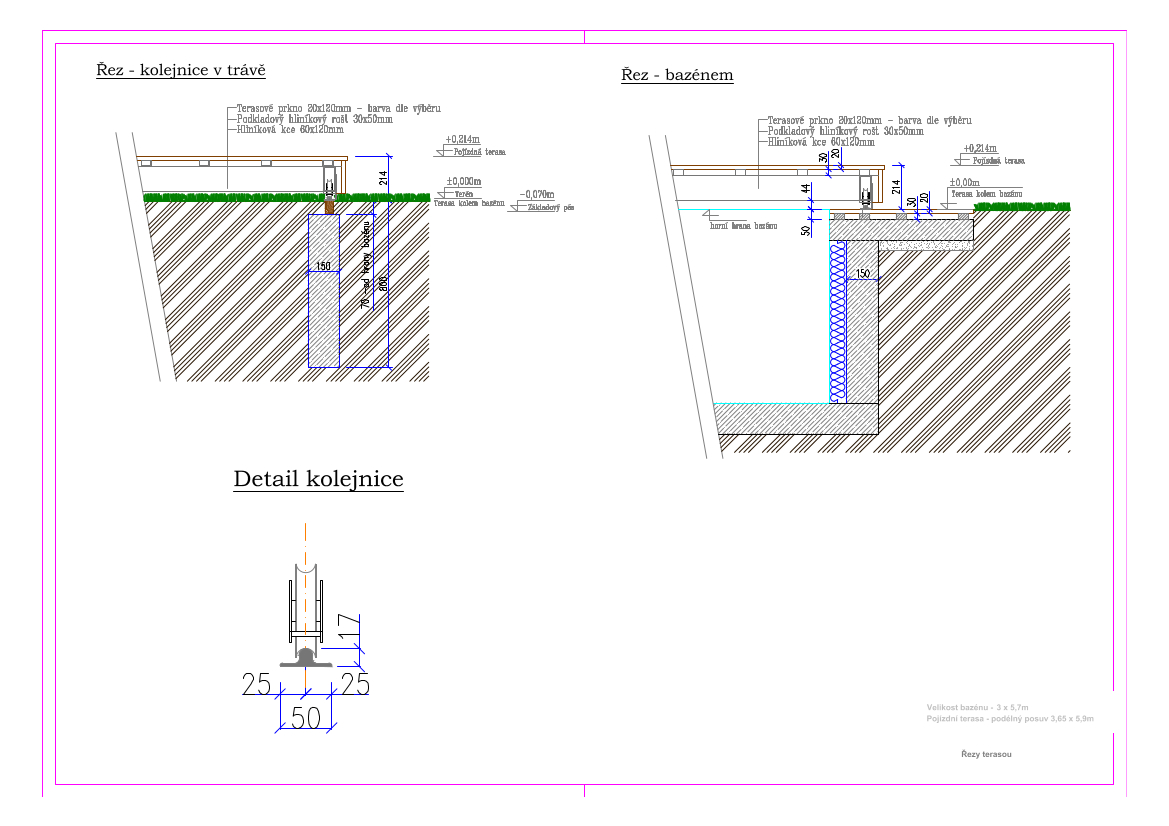 Detaily provedení a montáže Technický výkres - řezPojízdné zastřešení vířivky a bazénu