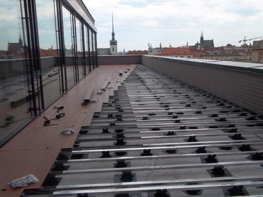S hydroizolací se nejčastěji setkáváme na balkonových terasách, kdy je pod terasou ještě obytná místnost, garáž nebo pergola. V takovém případě není možné kotvit hranoly do podkladu, aby se nenarušila izolační vrstva bránící zatékání vody.